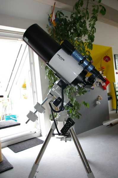 Die Hauptoptik ist das Meade LXD75 mit einem 8" SC Telekop. Die Montierung ist für meine Begriffe ausreichend steiff. Von Besitzern des Vorgängers, dem LXD 55 habe ich erfahren, dass die 55er nicht ganz so steif ausgebildet wurde.
